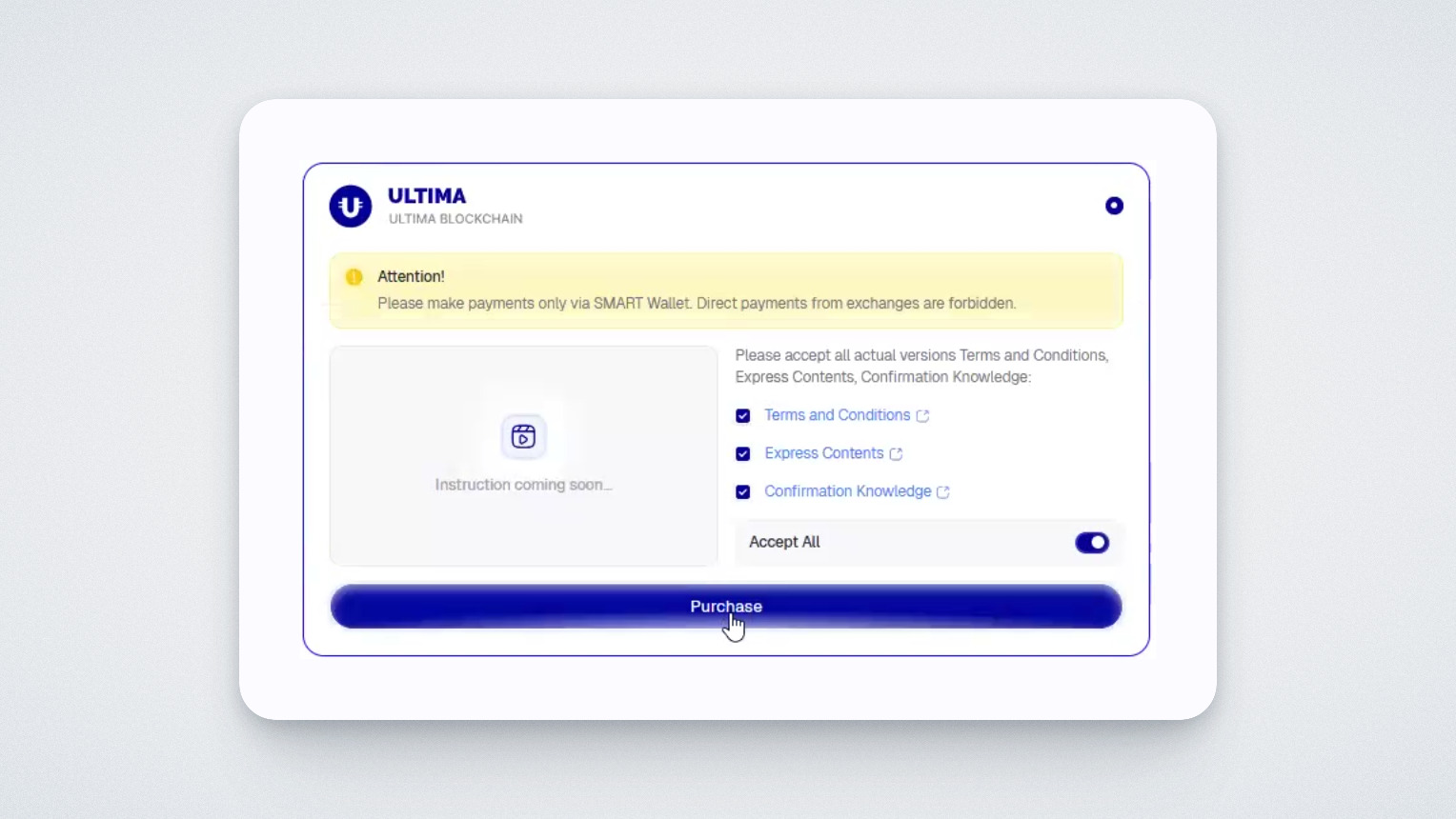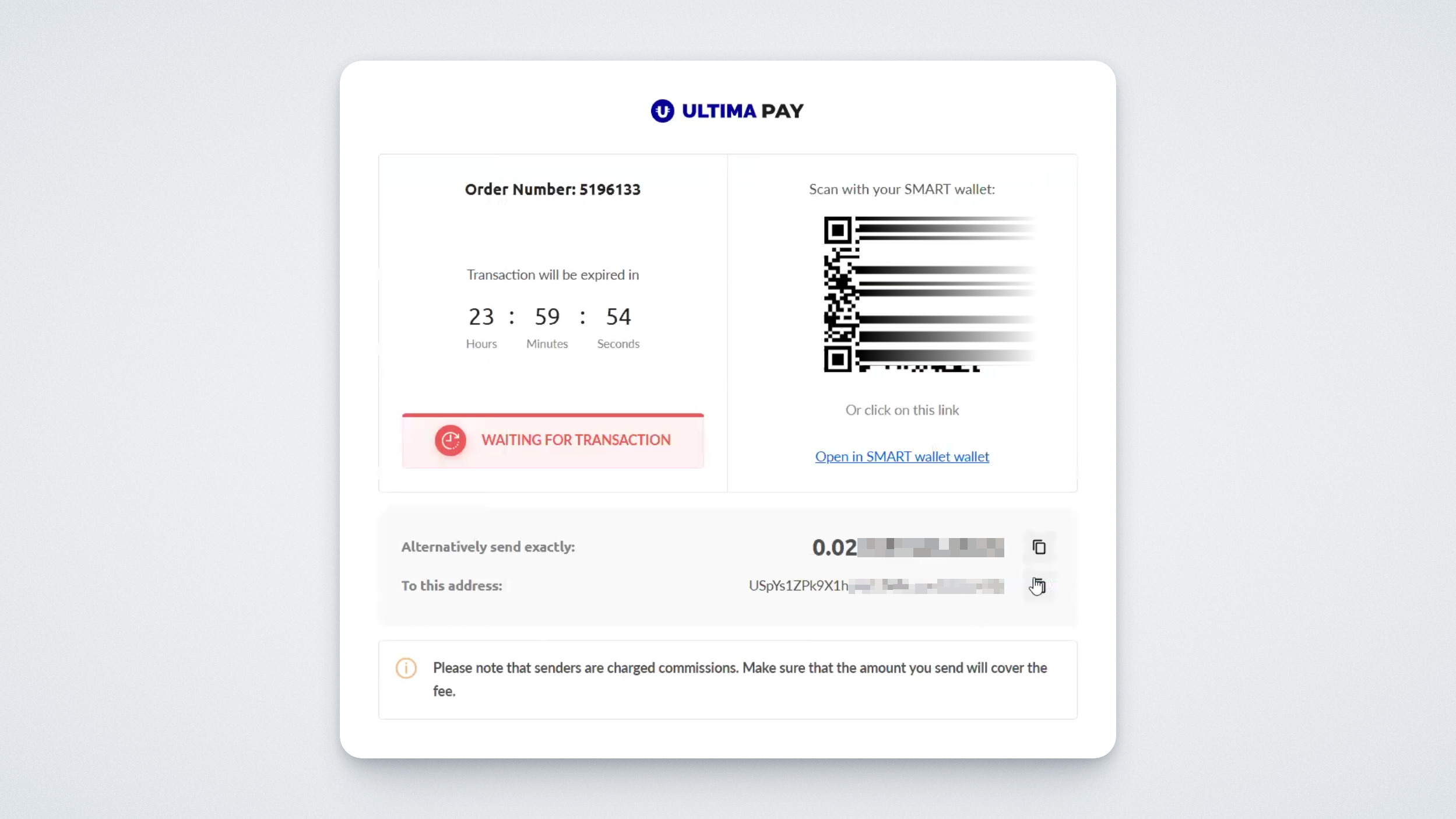 След това ще се отвори прозорец с URC-10 адреса, на който трябва да изпратите вашите ULTIMA монети. Изпратете посочената сума:
