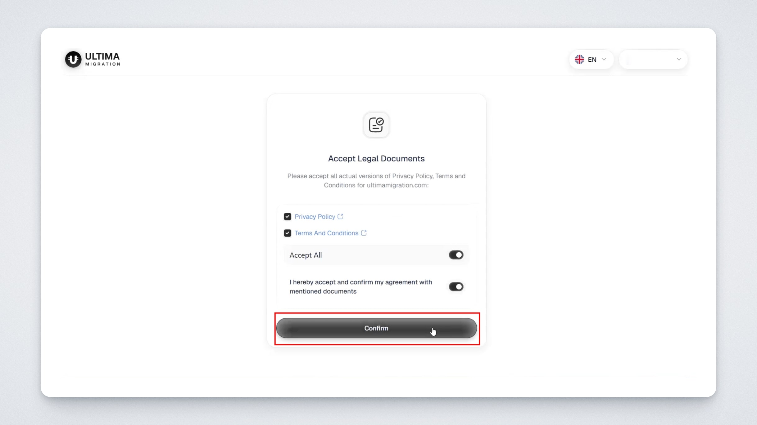 তাহলে, Ultima Migration আল্টিমা মাইগ্রেশন প্ল্যাটফর্মটি খুলুন। স্ক্রিনের উপরের অংশে “লগইন” বোতামে ক্লিক করুন এবং Platin Passport-এর মাধ্যমে অনুমোদন (অথরাইজ) সম্পন্ন করুন।