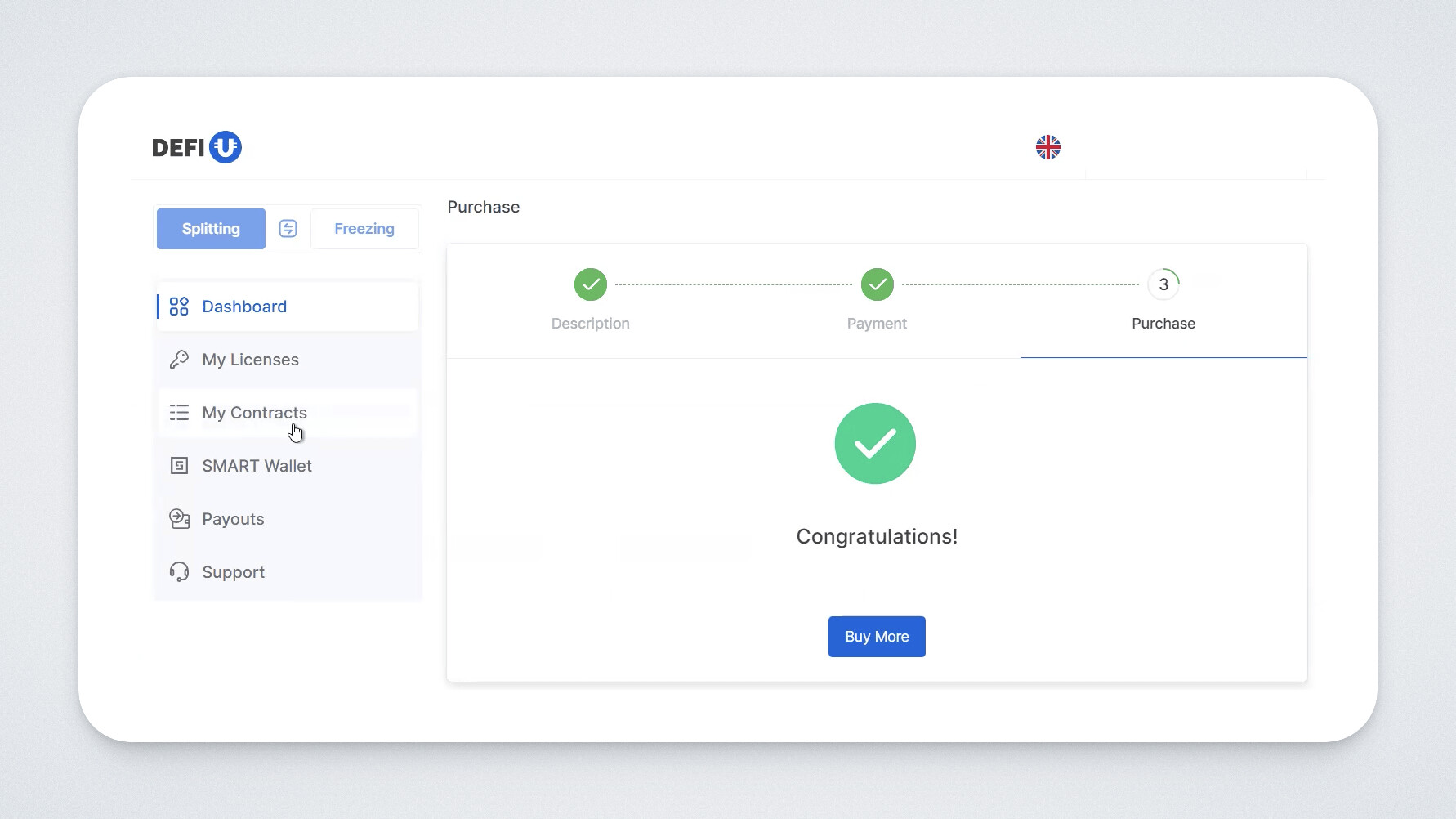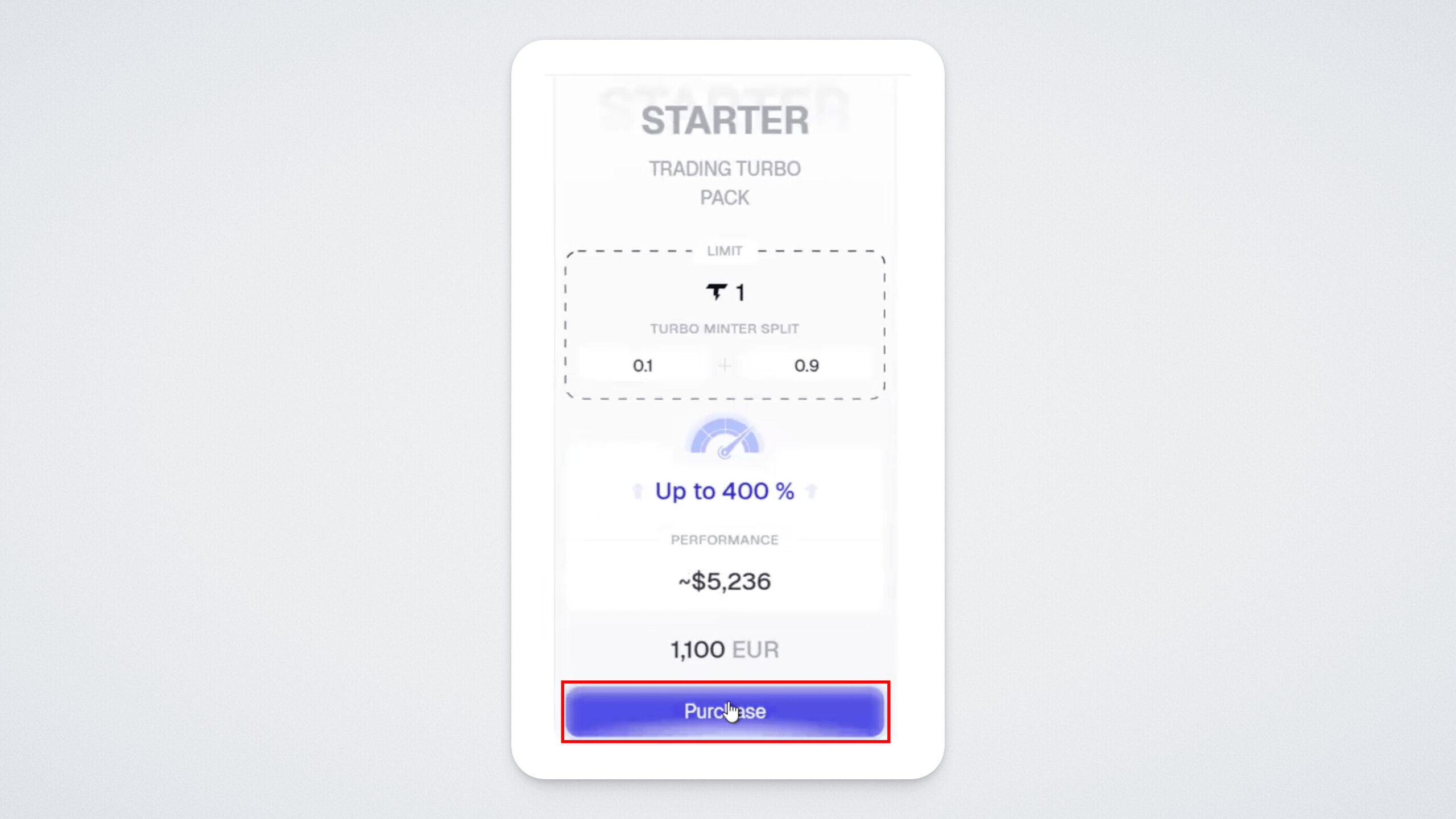 2. lépés: A Turbo Minter Split szerződés megvásárlása a DeFi-U platformon